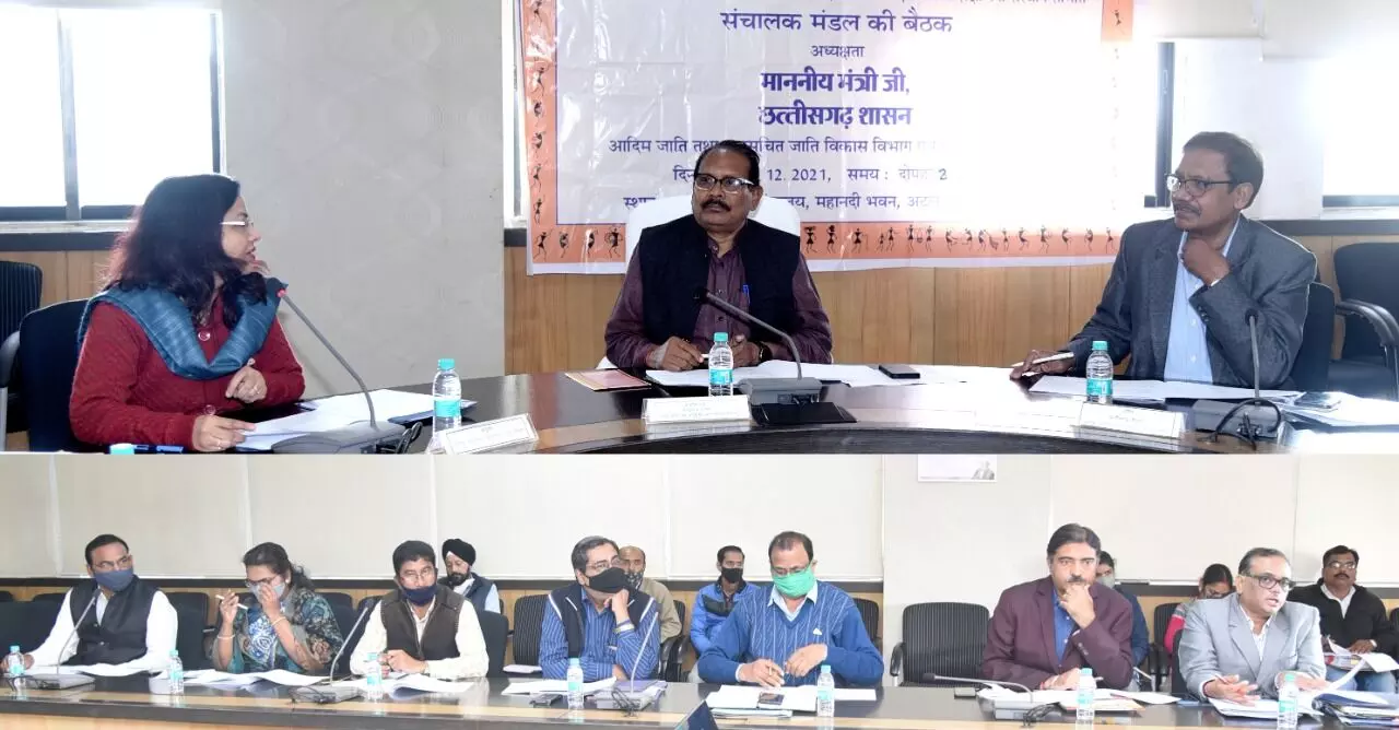 इसके अलावा एकलव्य विद्यालयों के नियमित कर्मचारियों की अनुकंपा नियुक्ति, चतुर्थ श्रेणी कर्मचारियों की पदोन्नति के संबंध में चर्चा की गई। एकलव्य आदर्श आवासीय विद्यालय के लिए यूनियन बैंक में नया बैंक खाता खोले जाने, पीवीटीजीआरएस के लिए नया खाता खोलने का अनुमोदन किया गया। एकलव्य आवासीय विद्यालय की जिला, संभाग और राज्य स्तरीय क्रीड़ा, सांस्कृतिक एवं बौद्धिक प्रतियोगिता का आयोजन 31 दिसंबर तक आयोजित करने, राज्य स्तरीय समिति के आय-व्यय का अनुमोदन किया गया। एकलव्य विद्यालयों की आईआईटी, एनआईटी, ट्रिपल आईटी एवं समकक्ष तथा एमबीबीएस पाठ्यक्रम में लैपटॉप प्रदाय एवं आर्थिक सहायता राशि स्वीकृत करने के संबंध में भी विस्तार से चर्चा की गई। बैठक में आदिम जाति तथा अनुसूचित जाति विकास विभाग के अपर संचालक संजय गौड़, उपायुक्त श्री प्रज्ञान सेठ सहित सबंधित विभागों के अधिकारी उपस्थित थे।