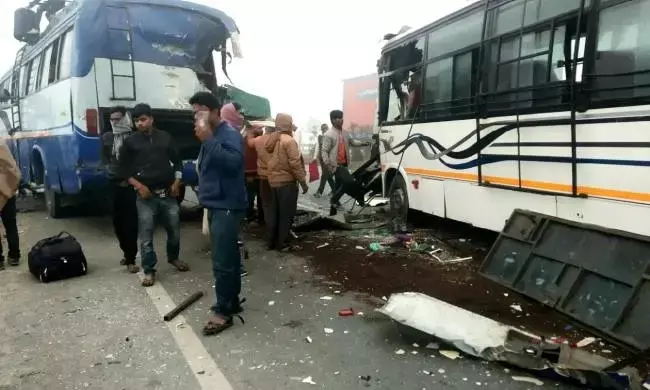 4 की मौत : दो बसों के बीच भीषण टक्कर…..अब तक 4 लोगों की मौत, 30 से ज्यादा यात्री घायल….तेज रफ्तार बस का टायर ब्लास्ट