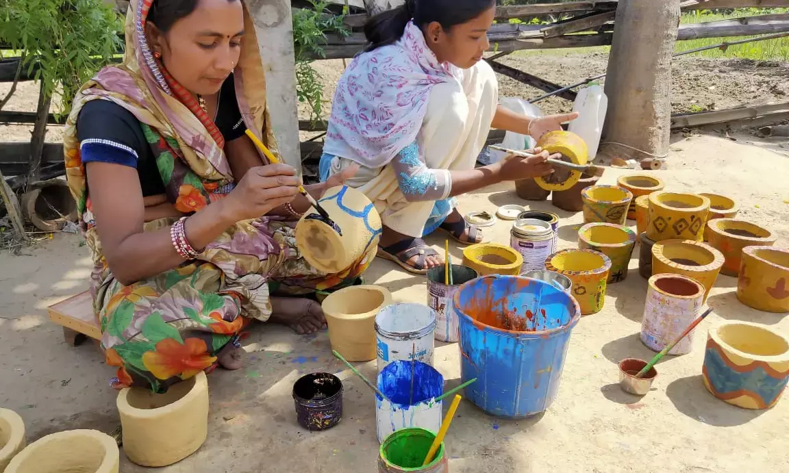 रायपुर, कोरबा 30 मार्च 2021। छत्तीसगढ़ सरकार की महिला कोष ऋण योजना ने भी महिला समूहों को आत्मनिर्भर बनाने में महत्वपूर्ण भूमिका निभाई है। महिला एवं बाल विकास विभाग की विभिन्न पोषण योजनाओं के लिए 89 समूहों की लगभग 900 महिलाएं रेडी टु इट बनाने का काम कर रहीं हैं। एक हजार 600 से अधिक समूहों की 17 हजार से अधिक महिलाएं गर्म पका भोजन तैयार कर कुपोषित बच्चों और गर्भवती माताओं को रोज खिला रहे हैं। महिलाओं से जुड़े कामों के साथ-साथ पुरूषों के एकाधिकार वाले कई जीविकोपार्जन के काम कोरबा जिले में महिला समूहों द्वारा किए जा रहे हैं। ईंट निर्माण, चांवल व्यवसाय, आंटा चक्की संचालन, कोशा धागाकरण, सिलाई व्यवसाय, किराना-कपड़ा मनिहारी व्यवसाय, मसाला व्यवसाय, पापड़ निर्माण, बांस-शिल्प व्यवसाय से लेकर वनोपज संग्रह, साबुन, रंग, गुलाल निर्माण जैसे कामों में महिला समूहों की सदस्यों ने अपनी क्षमता और कार्य कुशलता का उत्कृष्ट प्रदर्शन किया है। महिला कोष के माध्यम से जिले के दो हजार 114 समूहों को अभी तक अपना व्यवसाय करने के लिए 25 से 30 हजार रूपए के हिसाब से चार करोड़ 41 लाख रूपए से ज्यादा का ऋण दिया गया है। इसमें खास बात यह है कि ऋण लेने के बाद समूहों ने अपनी कर्मठता और मेहनत से व्यवसाय को आगे बढ़ाया, अच्छी आमदनी प्राप्त की और लगभग 95 प्रतिशत से अधिक समूहों ने ऋण की अदायगी भी कर दी है। ग्रामीण क्षेत्रो में बैंकिंग सुविधाओं के विस्तार के लिए 149 बैंक सखियां भी काम कर रहीं हैं। पेंशन या स्काॅलरशीप का भुगतान हो या मनरेगा की मजूदरी देना हो, बैंक खाते से राशि निकालना हो या बचत के लिए जमा करना हो ऐसे सभी काम लोगों के घर जाकर बैंक सखियों के माध्यम से आसानी से हो रहे हैं।