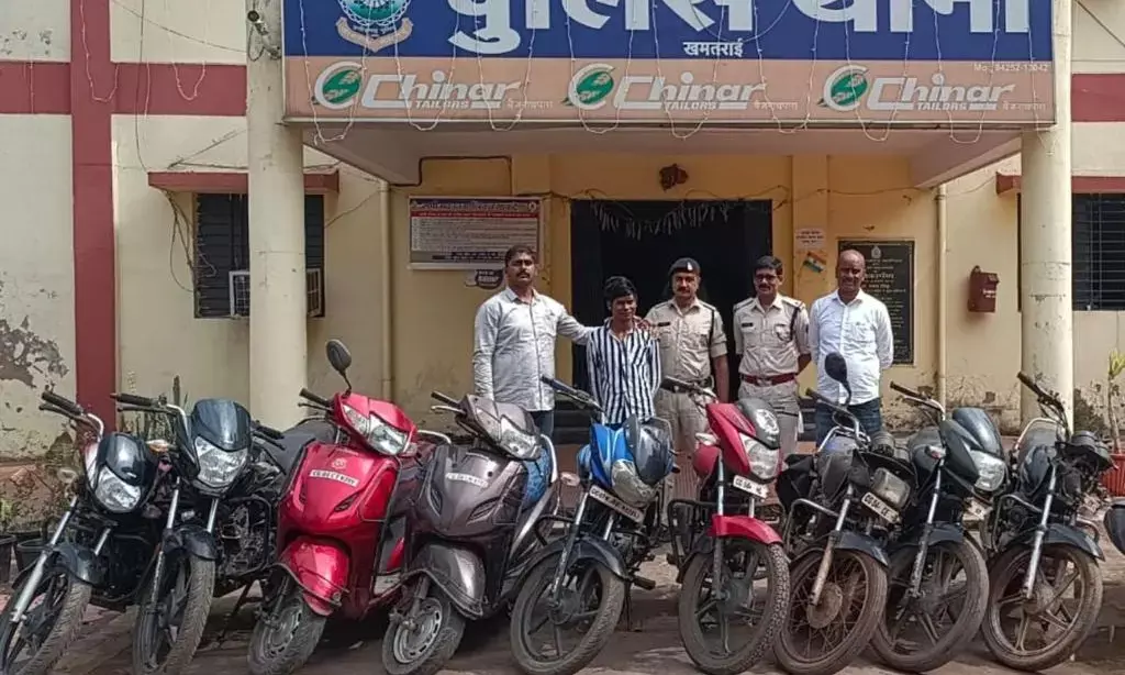 बाइक चोर गिरफ़्तार: पुलिस की चेकिंग में बाइक चोर पकड़ाया, नौ बाइक भी जब्त