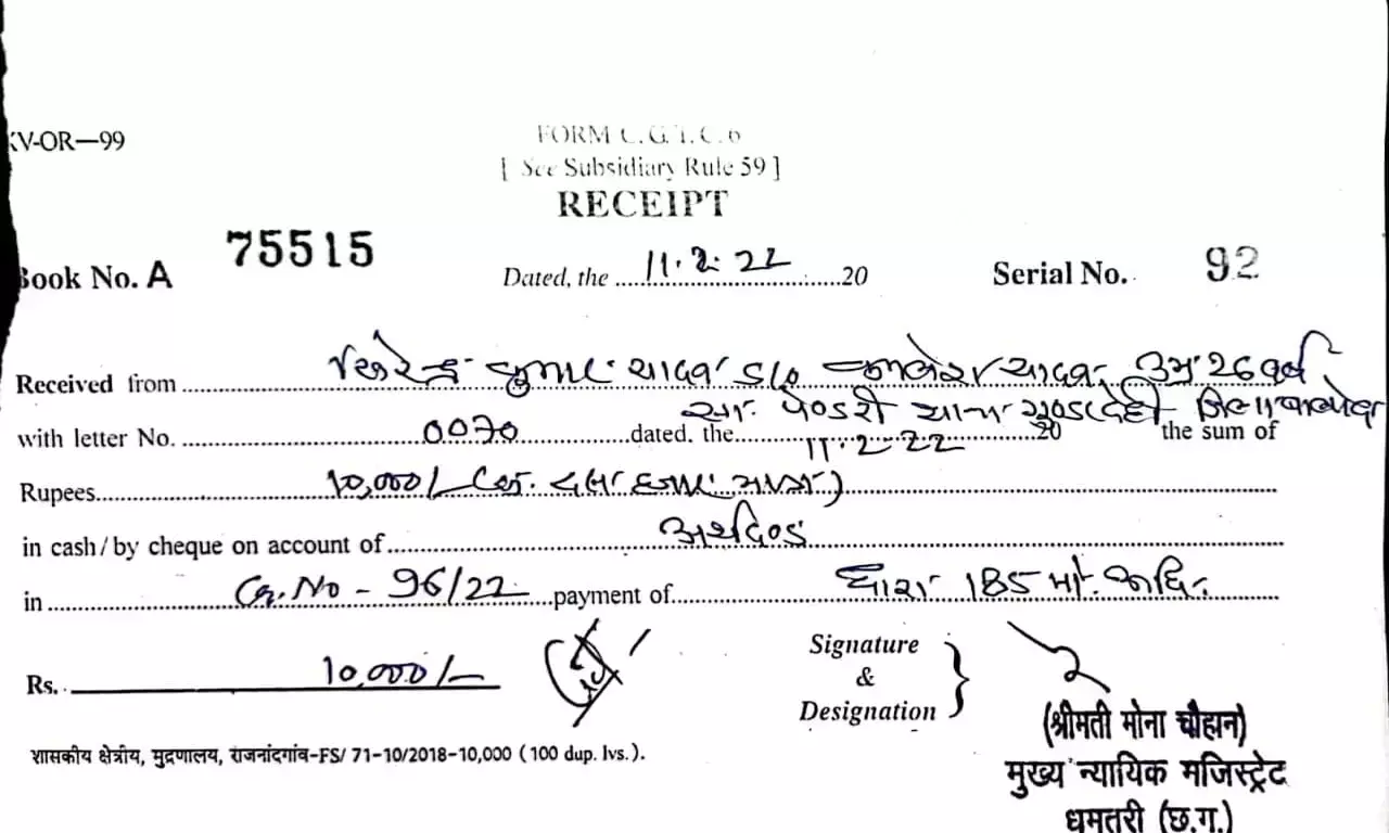 धमतरी 12 फरवरी 2022. एसपी प्रशांत ठाकुर के निर्देशन में अतिरिक्त पुलिस अधीक्षक निवेदिता पॉल के मार्गदर्शन में समस्त थाना/चौकी द्वारा दुर्घटना को रोकने के लिये लगातार शराब पीकर वाहन चलाने वाले वाहन चालकों के खिलाफ कार्यवाही की जा रही है.इसी तारतम्य में उप पुलिस अधीक्षक यातायात मणीशंकर चंद्रा एवं प्रभारी यातायात के.देव राजू के द्वारा भी अर्जुनी मोड नहरनाका चौक में यातायात चेकिंग पांईट लगाकर शराब सेवन कर वाहन चलाने वाले वाहन चालको का एल्कोहल मापी यंत्र से चेक किया गया. जिसमें 4 वाहन चालक शराब सेवन कर वाहन चलाते पाये गये जिनका ईस्तगासा तैयार कर 11 फरवरी को न्यायालय पेश किया गया जिसमें हाईवा वाहन क्रमांक सी जी 24 व्ही 2915 के चालक खिलेन्द्र कुमार पिता कमलेश यादव उम्र 26 वर्ष साकिन पेण्डरी थाना गुण्डरदेही जिला बालोद को न्यायालय द्वारा शराब सेवन कर वाहन चलाने पर 10,000/- अर्थदण्ड से दंडित किया गया एंव 3 वाहन चालको को दिनांक 14 फरवरी को पेश करने आदेशित किया गया...