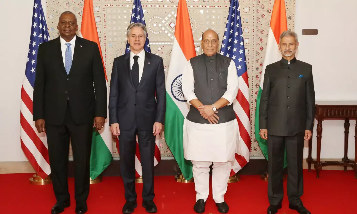 India-US 2+2 Dialogue:रक्षा मंत्री राजनाथ सिंह ने अमेरिकी रक्षा मंत्री लॉयड ऑस्टिन के साथ कई अहम मुद्दों पर बातचीत की है। शुक्रवार को नई दिल्ली में भारत और अमेरिका के बीच टू प्लस टू डायलॉग आयोजित किया गया था। उम्मीद लगाई जा रही है कि भारत को अब जल्द ही अमेरिकी युद्धक ड्रोन 'एमक्यू-9बी' मिलेगा।