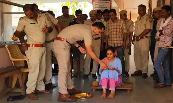 प्रतापगढ़ 11 मई 2022 I शादी समारोह में हल्दी की रस्म और मंगल गीतों की धुन तो आपने बहुत सुनी होगी पर जिस थाने में अपराधी और अपराधियों से जुड़े मामलों के अलावा कुछ और नहीं देखने को मिलता है वहां भी एक अनोखा आयोजन देखने को मिला. प्रतापगढ़ जिले के अरनोद उपखंड मुख्यालय के थाने में अपनी शादी की छुट्टी पर जा रही महिला कांस्टेबल को थाना अधिकारी और थाने के स्टाफ ने अनोखे अंदाज में विदाई दी.