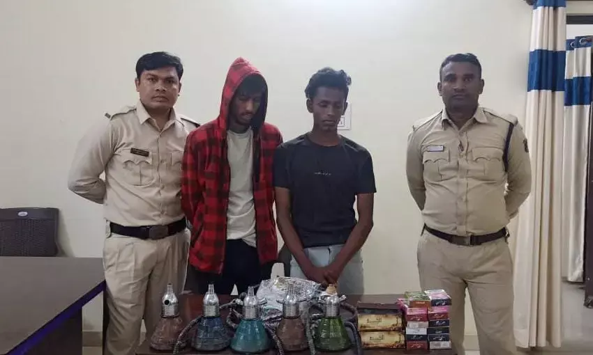 बाहर ताला लगा कर अंदर हुक्का पिलाने वाले दो कैफे संचालक गिरफ्तार... हुक्का, हुक्का पाट तथा फ्लेवर भी किया गया जब्त