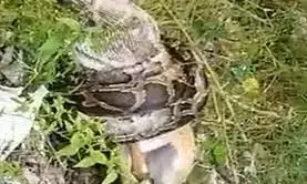 हल्द्वानी 24 अक्टूबर 2021. उत्तराखंड में नीलगाय और अजगर का वीडियो वायरल हुआ है। जहां एक अजगर ने नीलगाय को जकड़ रखा है। अजगर एक विशाल नीलगाय को निगल गया। वीडियो में देखा जा सकता है कि आधी नीलगाय अजगर के मुंह में है और आधी को जकड़ रखा है। अजगर लगातार गाय को निगलने की कोशिश कर रहा है। वीडियो में ये पूरा वाकया कैद हो गया। वीडियो नैनीताल जिले के हल्द्वानी का बताया जा रहा है। गांव वालों का कहना है कि ये अजगर लंबे समय से इसी इलाके में रेंग रहा था। अजगर की लंबाई 20 से 25 फीट बताई जा रही है। देखिए ये शॉकिंग वीडियो।