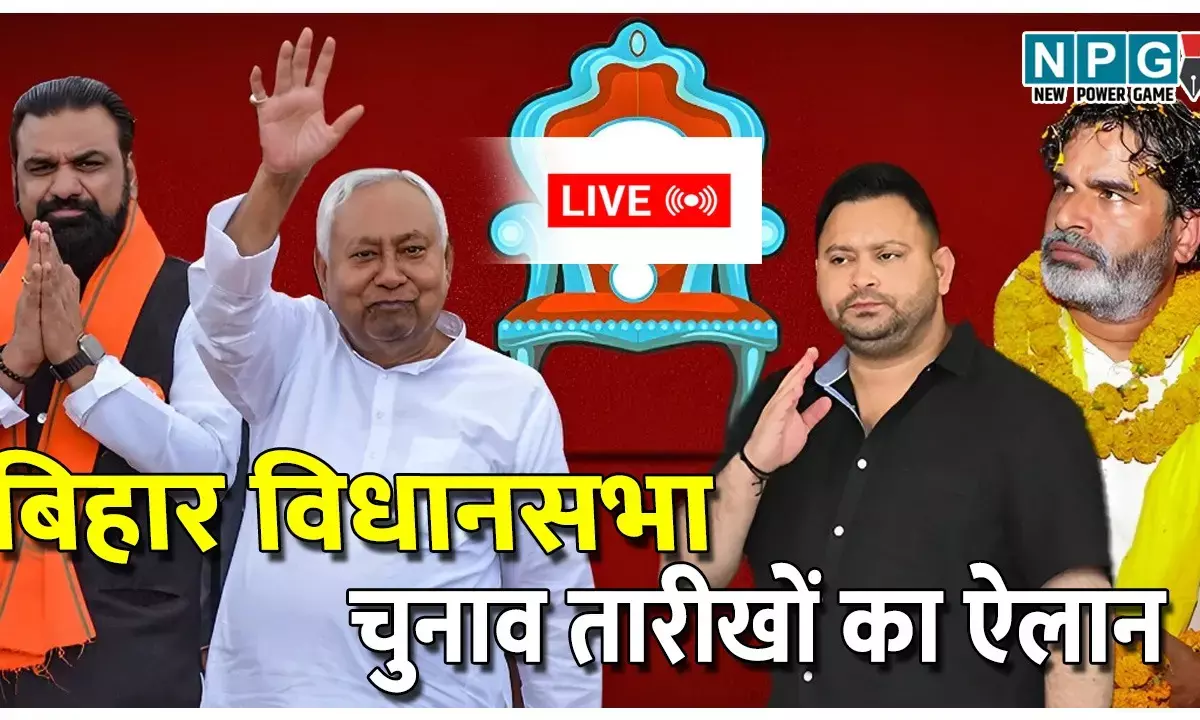 Bihar Election 2025 LIVE: NPG News: चुनाव आयोग ने सोमवार (6 अक्टूबर) को बिहार में विधानसभा चुनाव की तारीखों का ऐलान कर दिया है। बिहार विधानसभा की सभी 243 सीटों पर 6 और 11 नवंबर को 2 चरणों में मतदान होगा। इसके बाद 14 नवंबर को मतों की गणना की जाएगी।
