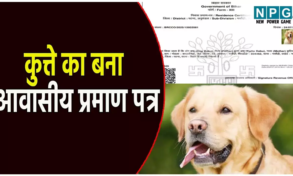 Kutte Ke Nam Par Awasiya Praman Patra: पटना: बिहार की राजधानी पटना से एक हैरान कर देने वाला मामला सामने आया है, जहां एक कुत्ते के नाम पर आवासीय प्रमाण पत्र जारी कर दिया गया है। इतना ही नहीं प्रमाण पत्र में आवेदक की फोटो की जगह कुत्ते का ही फोटो लगा है। यह प्रमाण पत्र जब सोशल मीडिया पर वायरल हुआ, तो अधिकारियों में हड़कंप मच गया। आनन-फानन में जिलाधिकारी ने इस मामले में जांच के आदेश दिए हैं।