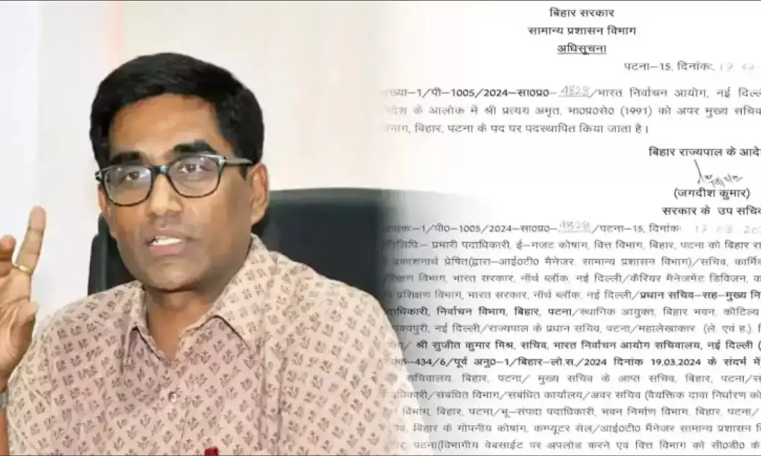 Pratyaya Amrit Bihar Chief Secretary: बिहार की ब्यूरोक्रेसी में एक बड़ा और महत्वपूर्ण बदलाव होने जा रहा है। वर्तमान मुख्य सचिव अमृत लाल मीणा 31 अगस्त को रिटायर हो रहे हैं और उनके स्थान पर एक सितंबर से IAS प्रत्यय अमृत बिहार के नए मुख्य सचिव का कार्यभार संभालेंगे। सामान्य प्रशासन विभाग ने इस तबदीली की अधिसूचना भी जारी कर दी है।