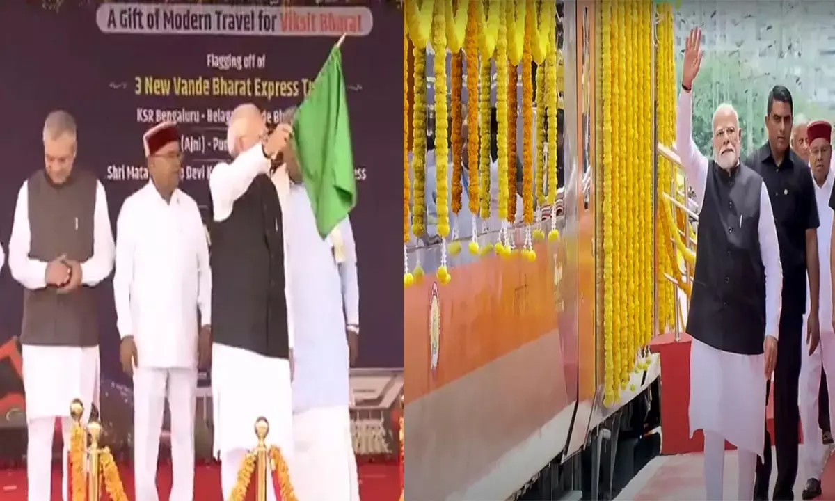 प्रधानमंत्री नरेंद्र मोदी ने रविवार को बेंगलुरु के KSR रेलवे स्टेशन से तीन वंदे भारत एक्सप्रेस ट्रेन को हरी झंडी दिखाकर देश को बड़ी सौगात दी है। PM मोदी ने बेंगलुरु से बेलगावी, अमृतसर से श्री माता वैष्णो देवी कटरा और नारपुर (अजनी) से पुणे तक की तीन वंदे भारत एक्सप्रेस ट्रेन को हरी झंडी दिखाई है। यह ट्रेने न सिर्फ यात्रा के समय को कम करेगी, बल्कि क्षेत्रिय संपर्क को भी बढ़ाने में मददगार साबित होगी।