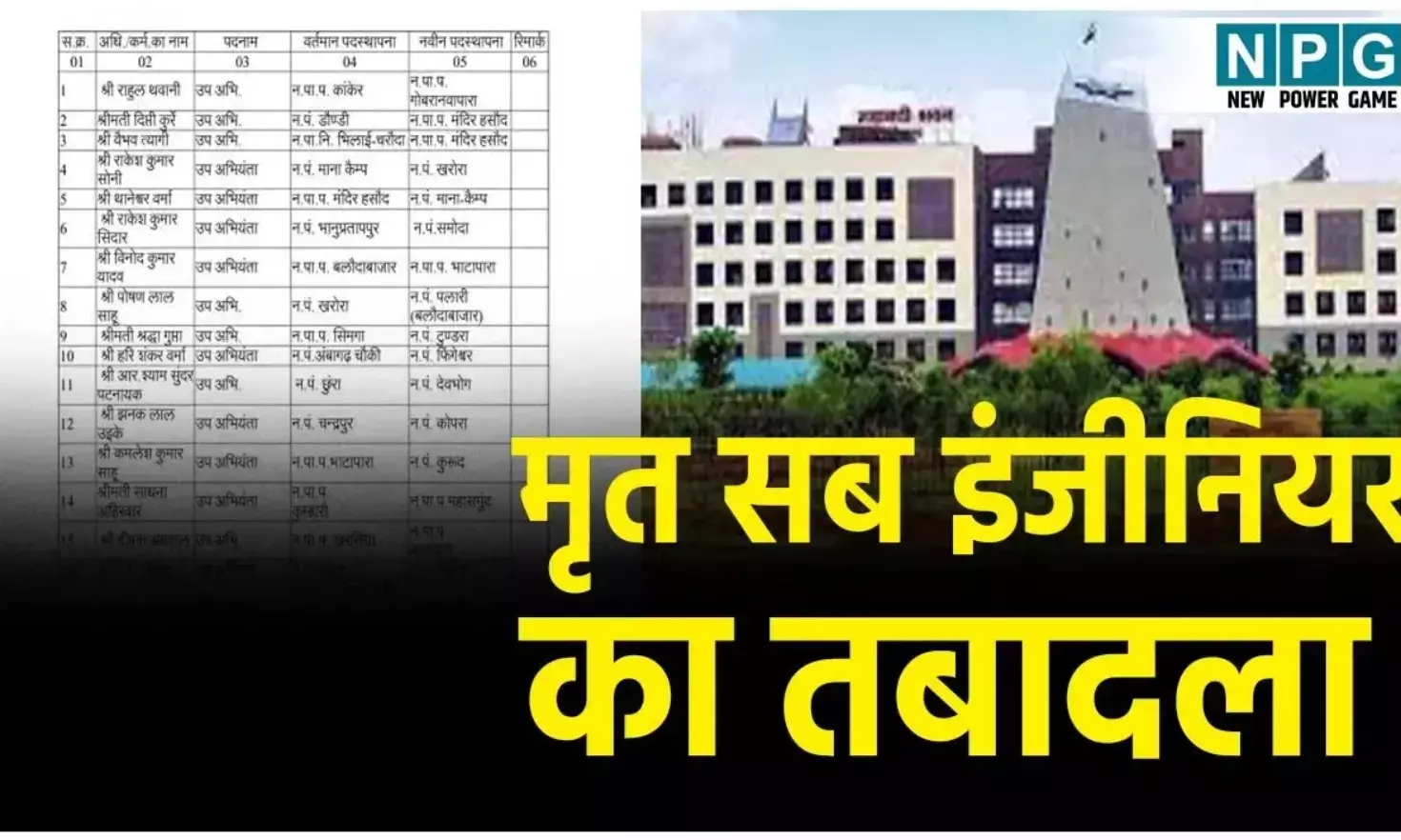 Balod Sub Engineer Transfer News: छत्तीसगढ़ के बालोद जिले से प्रशासनिक लापरवाही का हैरान कर देने वाला मामला सामने (Balod Sub Engineer Transfer) आया है. यहाँ एक ऐसे इंजीनियर का तबादला कर दिया गया. जिसकी दो महीने पहले ही मौत हो चुकी है. नवा रायपुर अटल नगर नगरीय प्रशासन एवं विकास विभाग ने मर चुके उप अभियंता(Sub Engineer) के तबादले का आदेश भी जारी किया है.