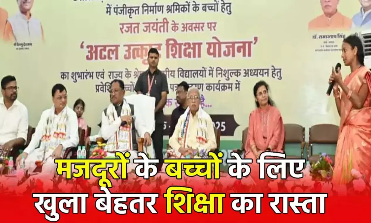 CM Vishnudeo Sai: "अटल उत्कृष्ट शिक्षा योजना" से प्रदेश के श्रमिकों के बच्चों को कक्षा छठवीं से बारहवीं तक श्रेष्ठ आवासीय विद्यालयों में निःशुल्क शिक्षा प्राप्त होगी। इनका पूरा खर्च श्रम विभाग द्वारा वहन किया जाएगा। मुख्यमंत्री विष्णु देव साय ने श्रम विभाग द्वारा श्रमिक बच्चों के लिए संचालित अटल उत्कृष्ट शिक्षा योजना का शुभारंभ किया....