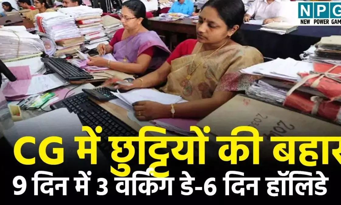 CG Holiday News: अक्टूबर का कैलेंडर आपको याद हो तो, तब महीने में तकरीबन 21 दिन की छुट्टी पड़ी थी। तब बैंकों में भी हालिडे था। मार्च के आखिरी सप्ताह और अप्रैल के पहले सप्ताह पर नजर डालें तो नौ दिन में महज तीन दिन वर्किंग डे और पूरे छह दिन अवकाश। लगातार पड़ रही छुट्टियों को लेकर अब एक बड़ा सवाल यह उठ रहा है, ऐसे में सरकार का गुड गर्वनेंस कैसे चलेगा। आम लोगों की दिक्कतें कैसे दूर हाेंगी। दफ्तर बंद रहेगा तो फाइलें कैसे एक से दूसरे टेबल मूव करेंगी?