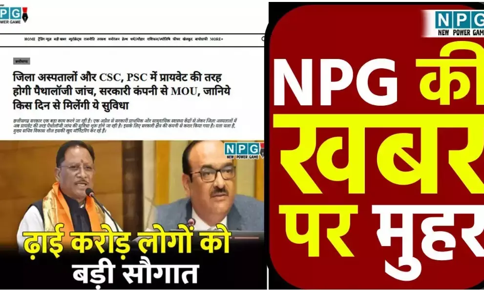 NPG की खबर पर मुहर: स्वास्थ्य सेवाओं में छत्तीसगढ़... ... CG Top News Today: छत्तीसगढ़ की आज की बड़ी खबरें, एक क्लिक में जानें पूरे राज्य की टॉप खबरें!