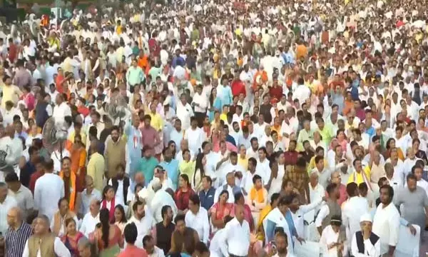 शपथ ग्रहण समारोह में मेहमानों की भीड़।