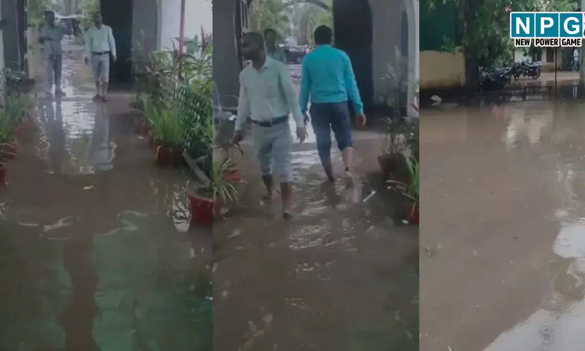 बिलासपुर के नेहरू चौक में स्थित तहसील और एसडीएम कार्यालय में 2 घंटे की बारिश में जलभराव हो गया। कार्यालय दफ्तर के बाहर से लेकर अंदर के परिसर और कार्यालय में कर्मचारियों के बैठने वाले जगह में भी पानी भर गया। जिस वक्त बारिश शुरू हुई उस वक्त एसडीएम मनीष साहू सीनियर सिटीजनों के द्वारा लगाए गए प्रकरणों की सुनवाई कर रहे थे। बारिश के चलते पानी बढ़ते बढ़ते कोर्ट रूम तक भर गया। एसडीएम के रीडर के कार्यालय के अलावा तहसीलदार राहुल, शर्मा,विभोर यादव के दफ्तर में भी पानी भर गया। पानी भरने के चलते पक्षकारों और अधिवक्ताओं को भी आने में परेशानी होने लगी। जिसके चलते अधिकारी खाली बैठे रहे। किसी तरह शासकीय दस्तावेजों को कर्मचारियों ने पानी से सुरक्षित किया। कार्यालय का समय खत्म होने के बाद कर्मचारी अधिकारी किसी तरह अपने कपड़े बचाते हुए बाहर निकले।