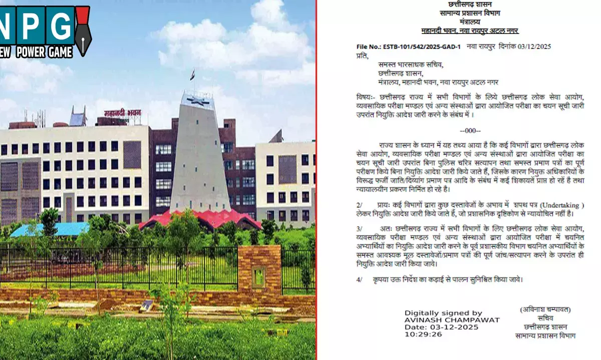 CG GAD: सामान्य प्रशासन विभाग द्वारा जारी आदेश में दो टूक कहा है, छत्तीसगढ़ लोक सेवा आयोग, व्यवसायिक परीक्षा मण्डल एवं अन्य संस्थाओं द्वारा आयोजित परीक्षाओं की चयन सूची के बाद सफल अभ्यर्थियों के संपूर्ण दस्तावेजों की अपने स्तर पर पूरी पड़ताल के बाद ही नियुक्ति आदेश जारी करे। निर्देशों का गंभीरता के साथ पालन करने की हिदायत दी गई है।
