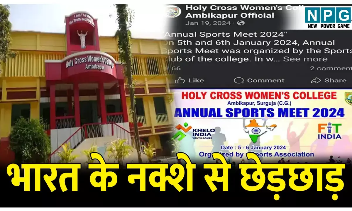 अंबिकापुर शहर के चर्चित होलीक्रॉस वुमन कॉलेज के प्राचार्य शांता जोसेफ व उनके फेसबुक पेज संचालक के खिलाफ गांधीनगर थाने में अपराध दर्ज किया गया है। मामला भारत के नक्शे से छेड़छाड़ करने व गलत ढंग से प्रकाशित करने से जुड़ा हुआ है। शिकायकर्ता कैलाश मिश्रा ने बताया कि 5 जनवरी 2024 को होलीक्रॉस वुमन कॉलेज के आधिकारिक फेसबुक पेज पर स्पोर्ट्स डे के बैनर में भारत का एक विकृत व विवादित नक्शा प्रकाशित किया गया। इसमें अक्साई चीन और पाक अधिकृत कश्मीर POK को अलग दिखाया गया।