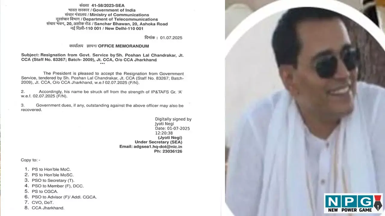 CG News: 2009 बैच के IAS (Allied) पोषण लाल चंद्राकर का इस्तीफा केंद्र सरकार ने स्वीकार कर लिया है। हाल ही में आईएएस चंद्राकर ने अपने पद से इस्तीफा दे दिया था। छत्तीसगढ़ के एक और आईएएस अफसर ने सरकारी नौकरी छोड़ दी है। आईएएस चंद्राकर का त्यागपत्र केंद्र सरकार ने स्वीकार कर लिया है। इसके साथ ही इस बात की अटकलें लगाई जा रही है कि जल्द ही राजनीतिक पारी की शुरुआत कर सकते हैं।