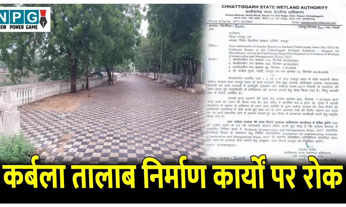 CG News: कर्बला तालाब में निर्माण कार्यों पर रोक, वेटलैंड अथॉरिटी ने कलेक्टर को दिया आदेश