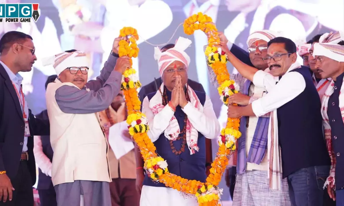 CG News: रायपुर। धरती आबा भगवान बिरसा मुंडा की 150वीं जयंती के पावन अवसर पर आयोजित जनजातीय गौरव दिवस कार्यक्रम में शामिल होने पहुंचे मुख्यमंत्री विष्णुदेव साय का आज जगदलपुर के सिटी ग्राउंड में विभिन्न जनजातीय समाज के प्रमुखों द्वारा आत्मीय स्वागत किया गया। इस दौरान मुख्यमंत्री का पारंपरिक सिहाड़ी माला, पगड़ी (साफा) और एक विशाल गजमाला भेंट कर सम्मान किया गया, जिसने पूरे आयोजन में सांस्कृतिक उल्लास भर दिया।
