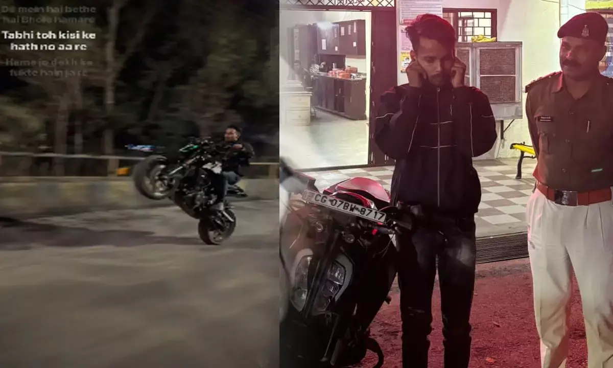 CG News: युवक ने चलती बाइक पर दिखाया जानलेवा स्टंट, वीडियो वायरल होने पर हिरोपंती पड़ी भारी, कान पकड़कर बोला-स्टंट करना पाप है...