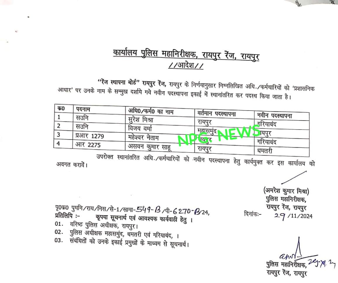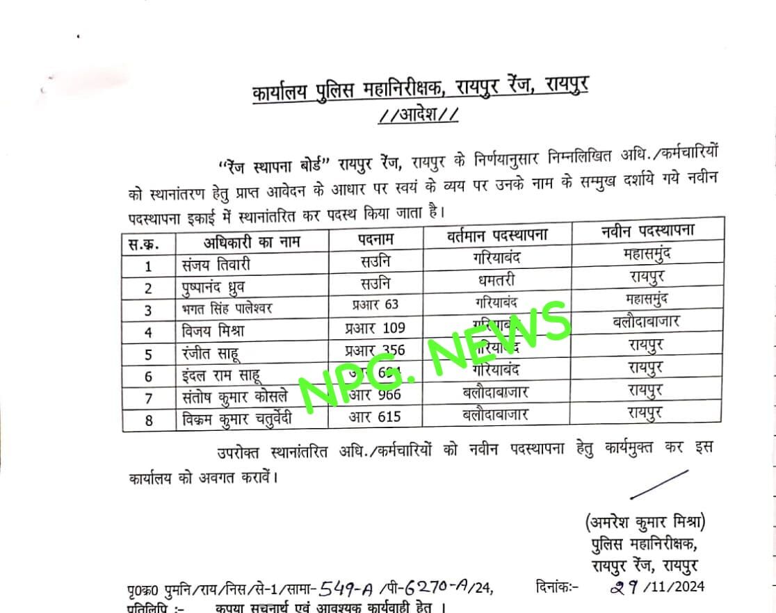 CG पुलिस ट्रांसफर: IG ने लंबे समय से जमे 4 उप निरीक्षकों समेत 12 पुलिस कर्मियों का किया तबादला
