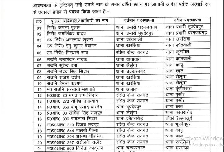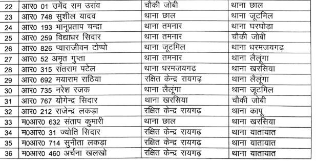 CG Police Transfer:बड़ी संख्या में इंस्पेक्टर, सब इंस्पेक्टर सहित पुलिस कर्मियों के तबादले किये गये हैं...