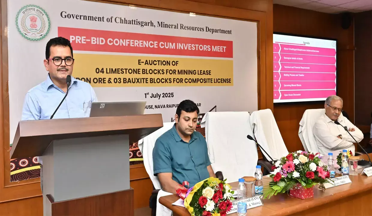 रायपुर। मुख्यमंत्री विष्णु देव साय के मार्गदर्शन में छत्तीसगढ़ में खनिज क्षेत्र में एक महत्वपूर्ण पहल करते हुए चूना पत्थर, लौह अयस्क और बॉक्साइट खनिज के नए ब्लॉकों की ई-नीलामी प्रक्रिया प्रारंभ हो गई है। इसी क्रम में आज नवा रायपुर अटल नगर में निवेशकों के लिए प्री-बिड सम्मेलन का आयोजन किया गया। इस प्री-बिड सम्मेलन का उद्देश्य राज्य की समृद्ध खनिज संपदा को औद्योगिक निवेश के लिए उपलब्ध कराना, स्थानीय विकास को बढ़ावा देना तथा पारदर्शी ई-नीलामी प्रणाली के माध्यम से निवेशकों को आकर्षित करना है।