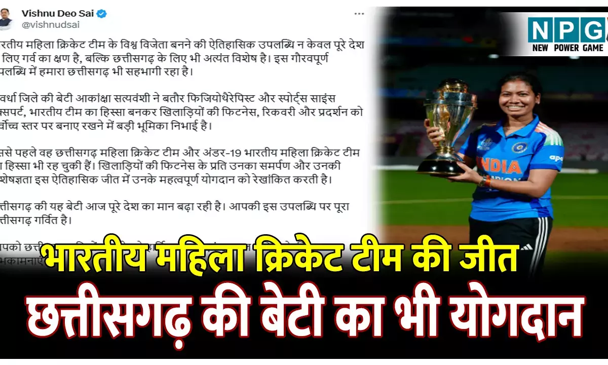 CM Sai News: भारतीय महिला क्रिकेट टीम की जीत में छत्तीसगढ़ की बेटी का भी योगदान, मुख्यमंत्री विष्णु देव साय ने बधाई देते हुए कही ये बात..