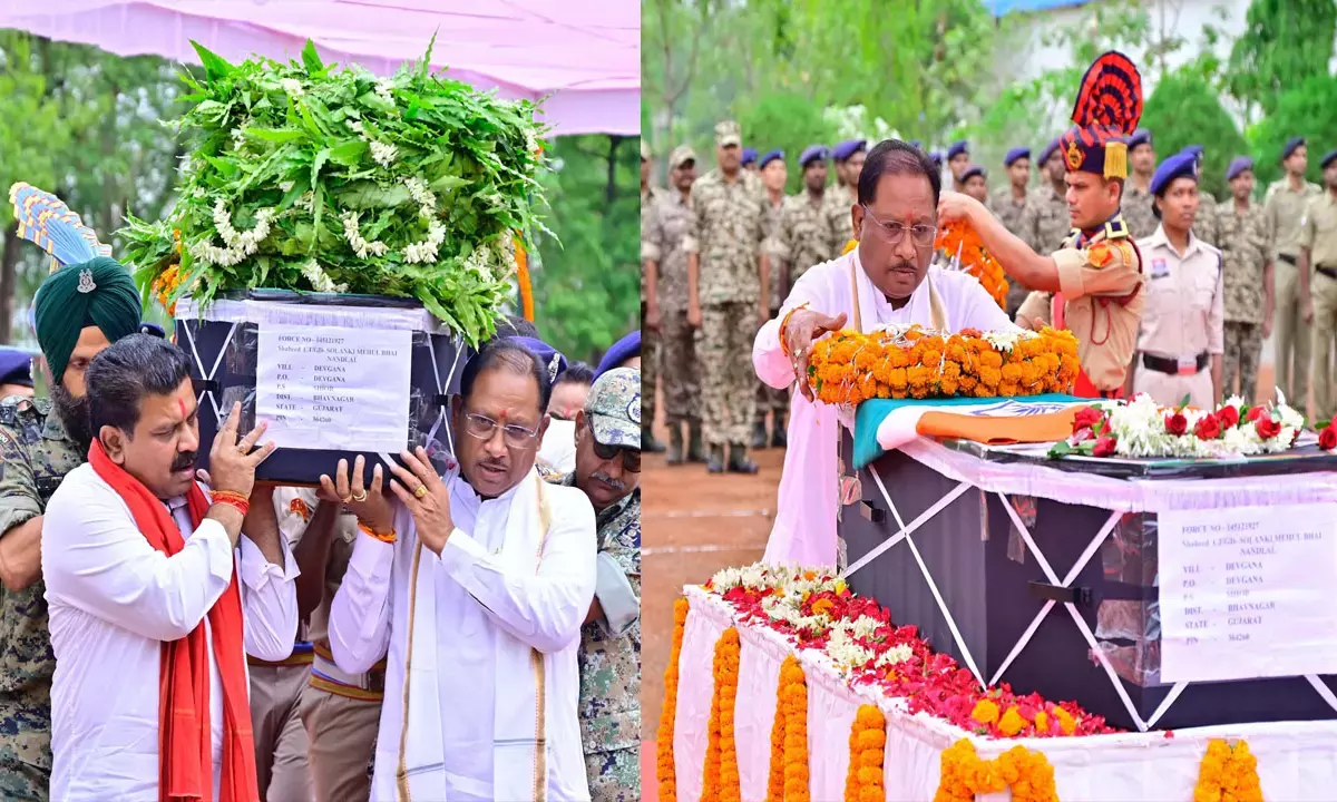 CM Vishnudeo sai: CM विष्णुदेव ने शहीद मेहुल भाई के पार्थिव शरीर को कंधा देकर दी अंतिम विदाई, कहा-नक्सलवाद के समूल नाश का संकल्प करेंगे पूरा