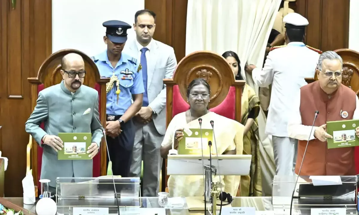 विधान सभा अध्यक्ष डॉ. रमन सिंह ने राष्ट्रपति द्रौपदी मुर्मु का स्वागत करते हुए कहा कि छत्तीसगढ़ विधानसभा को यह गौरव प्राप्त है कि तीसरी बार भारत के राष्ट्रपति ने सदन को संबोधित किया है। इससे पहले स्वर्गीय डॉ. एपीजे अब्दुल कलाम और प्रतिभा देवी सिंह पाटिल विधानसभा को संबोधित कर चुके हैं। उन्होंने राष्ट्रपति मुर्मु के सरल, संघर्षशील और प्रेरणादायक जीवन को देश की महिलाओं, जनप्रतिनिधियों और युवाओं के लिए प्रेरणा स्रोत बताया। उन्होंने छत्तीसगढ़ विधान सभा की 25 वर्ष की यात्रा को लोकतांत्रिक मूल्यों की सुदृढ़ता की यात्रा बताया। उन्होंने कहा कि सदन में ‘स्वअनुशासन’ की परंपरा स्थापित की गई, जहां सदस्यों ने स्वयं बनाए नियमों का पालन कर पूरे देश के लिए उदाहरण प्रस्तुत किया।