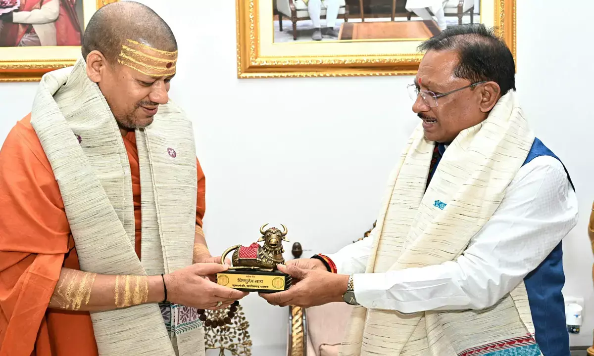 मुख्यमंत्री विष्णु देव साय से निरंजन पीठाधीश्वर महामंडलेश्वर डॉ. स्वामी कैलाशनंद गिरी महाराज ने की सौजन्य भेंट