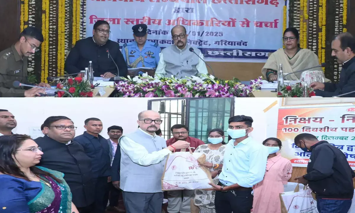 राज्यपाल रमेन डेका की अध्यक्षता में गरियाबंद कलेक्टोरेट सभाकक्ष में अधिकारियों से चर्चा की...