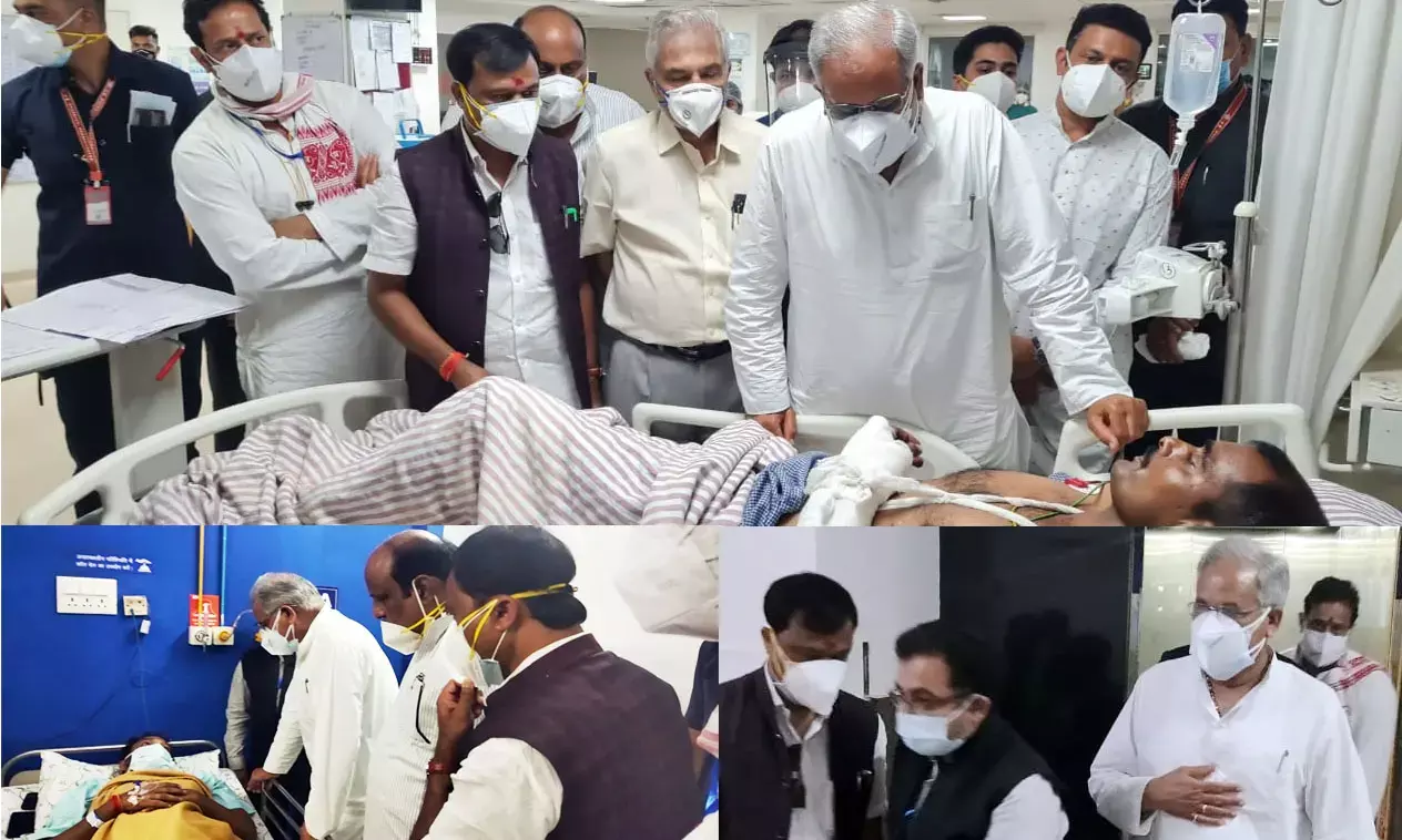 इसके बाद राजधानी के निजी अस्पताल रामकृष्ण केयर और NHMI में भर्ती घायल जवानों को देखने रवाना हो गए। दोनों अस्पतालों में 13 जवान भर्ती हैं। मुख्यमंत्री ने जवानों का कुशल क्षेम पूछा। उन्होंने डॉक्टरों से उपचार के सम्बंध भी बात की। उन्होंने निर्देश दिए कि जवानों का जितना बेहतर हो सके, इलाज किया जाए।