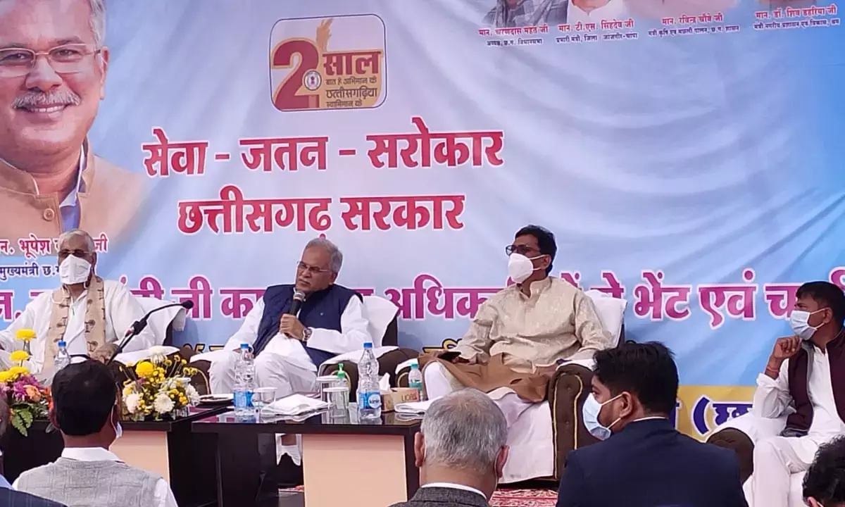 CM भूपेश बघेल का जांजगीर में सरकारी अमले से बेहद पारिवारिक संवाद .. बोले CM भूपेश “तन हल्का.. मन हल्का कर लो..पेन डायरी लाए हो तो रख दो”