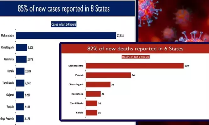 महाराष्ट्र में सबसे ज्यादा मरीज के साथ-साथ सबसे ज्यादा मौते भी हो रही है। महाराष्ट्र में 139 लोगों की मौत हुई है, जबकि मरीज के मामले में सातवें नंबर पर पंजाब मौत के मामले में दूसरे नंबर पर है। पंजाब में 64 लोगों की मौत हुई है, वहीं छत्तीसगढ़ में कुल 35 मौत हुई है। छत्तीसगढ़ मौत के मामले में तीसरे नंबर पर है। कर्नाटक में 21, तमिलनाडू में 16 और केरला में 16 मौत हुई है। देश में 82 प्रतिशत मौतें इन्हीं छह राज्यों में आ रहे हैं।