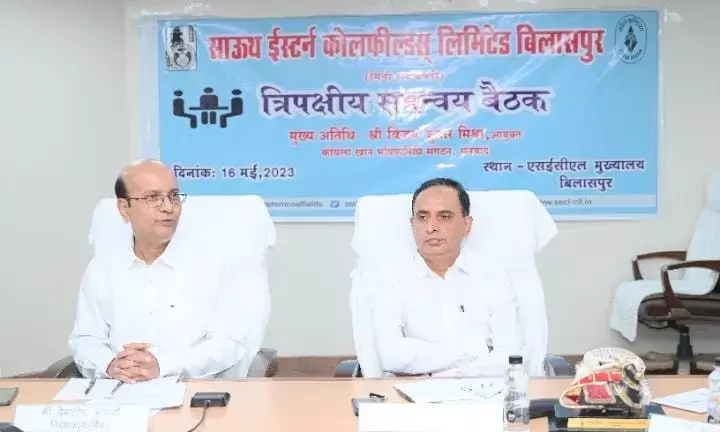CG SECL News: बिलासपुर 16 मई 2023 । एसईसीएल मुख्यालय बिलासपुर में त्रिपक्षीय समन्वय बैठक आयोजित की गयी। इस बैठक में मुख्य अतिथि विजय कुमार मिश्रा आयुक्त कोयला खान भविष्य निधि संगठन धनबाद, निदेशक कार्मिक एसईसीएल देबाशीष आचार्या, क्षेत्रीय आयुक्त जबलपुर आर.एस. कश्यप, क्षेत्रीय आयुक्त बिलासपुर आर.के. सिन्हा, महाप्रबंधक (कार्मिक/प्रशासन) डा. के.एस. जार्ज, उप महाप्रबंधक (कार्मिक/अधिकारी स्थापना/पीएफ-पेंशन) सुजाता रानी, मुख्य प्रबंधक (कार्मिक/पीएफ-पेंशन) आर.एस. राव उपस्थित रहे, साथ ही एसईसीएल के समस्त क्षेत्रों के क्षेत्रीय कार्मिक प्रबंधक उपस्थित रहे।