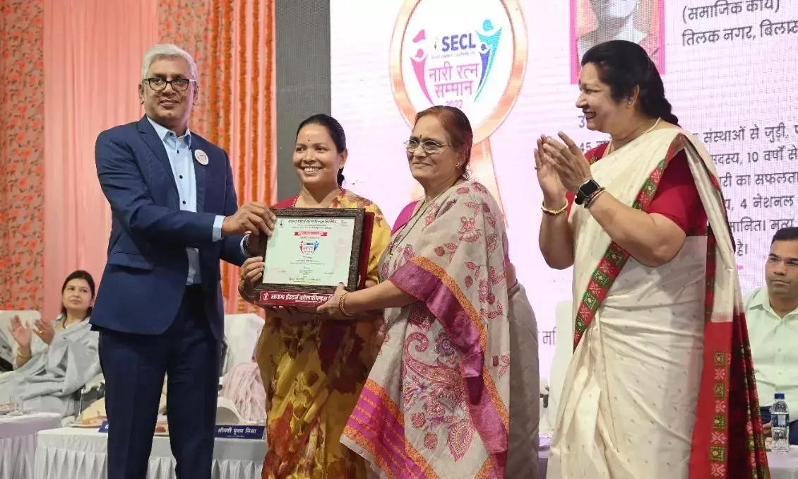 एसईसीएल महिला कर्मियों की उत्कृष्ट उपलब्धियों के लिये "नारी रत्न सम्मान" मुख्य सतर्कता अधिकारी बी.पी. शर्मा एवं श्रद्धा महिला मंडल की उपाध्यक्ष संगीता शर्मा द्वारा किया जिनमें- श्रीमती नथिया बाई फिटर हेल्पर मेके. धनपुरी ओसीएम सोहागपुर क्षेत्र, श्रीमती माया बाई कारट्रीक मेकर कंचन खुली खदान जोहिला, श्रीमती मधु प्यून दीपका क्षेत्र, श्रीमती शर्ली थॉमस मेट्रन कुसमुण्डा क्षेत्र, श्रीमती सरस्वती केटेगरी-।। चरचा वेस्ट बैकुण्ठपुर क्षेत्र, श्रीमती बुधनी बाई मषीनिष्ट केटेगरी-4 रिजनल वर्कशाप कोरिया चिरमिरी, कुमारी जानकी सिंह डाटा एन्ट्री ऑपरेटर जमुना कोतमा, श्रीमती ललिता कंवर केटे-1 सीईडब्ल्यूएस गेवरा, श्रीमती मुन्नी बाई वेल्डर हेल्पर केटे-।। क्षेत्रीय कर्मशाला बिजुरी हसदेव, श्रीमती मुल्की बाई मशीन हेल्पर भटगांव, श्रीमती त्रिवेणी बाई ईपी टर्नर सीडब्ल्यूएस कोरबा, श्रीमती अमिया केरकेट्टा मेट्रन छाल डिस्पेंसरी रायगढ़, श्रीमती करा बाई कन्वेयर ऑपरेटर केटेगरी-।।।, श्रीमती राम बाई आर्मेचर वाईन्डर केटेग-4 रिजनल वर्कशॉप बिश्रामपुर क्षेत्र,श्रीमती प्रियंका सिंह लिपिक ग्रेड ।। गेवरा, दीपका शुक्ला डाटा एन्ट्री ऑपरेटर उत्खनन विभाग मुख्यालय बिलासपुर, श्रीमती रश्मि खरे प्रबंधक (कार्मिक) दानकुनी कोल कॉम्प्लेक्स को उनके उत्कृष्ठ कार्यों के लिए एसईसीएल नारी रत्न पुरस्कार 2022 से पुरस्कृत किया गया।