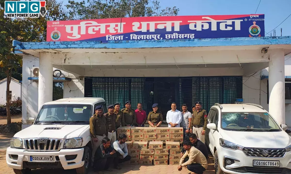कोटा पुलिस और एसीसीयू की टीम ने मौहारखार क्षेत्र में दो संदिग्ध वाहनों-स्कॉर्पियो (सीजी 04 केजे 0913) और मारुति अर्टिगा (सीजी 16 सीटी 0649)—को रोककर तलाशी ली। कार्रवाई में 18 और 16 पेटी गोवा व्हिस्की बरामद हुई, जो मध्य प्रदेश के भालूमाड़ा से तस्करी कर लाई जा रही थी। शराब का अनुमानित बाजार मूल्य 2.5 लाख रुपये है। साथ ही, दोनों वाहन और चार मोबाइल फोन जब्त किए गए।