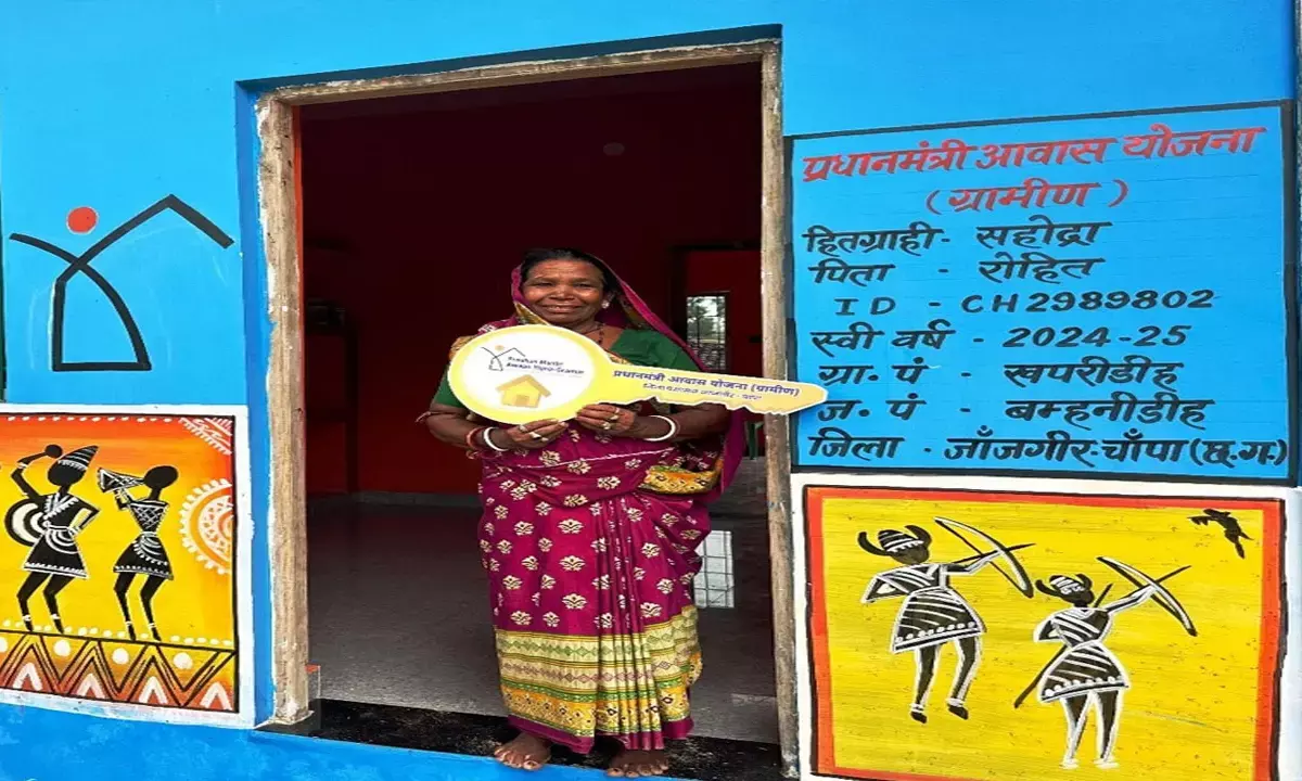 रायपुर। प्रधानमंत्री आवास योजना (ग्रामीण) के तहत जब श्रीमती सहोद्रा बाई धनुवार को अपने घर की चाबी मिली, तो यह महज चाबी नहीं थी यह उनके आत्मसम्मान और सुरक्षित भविष्य की शुरुआत थी। जांजगीर-चांपा जिले के जनपद पंचायत बम्हनीडीह अंतर्गत ग्राम पंचायत पुछेली खपरीडीह में धरती आबा जनजातीय उत्कर्ष अभियान के दौरान जब सहोद्रा बाई धनुवार को मंच से प्रधानमंत्री आवास योजना (ग्रामीण) के अंतर्गत निर्मित पक्के घर की चाबी सौंपी गई, तो उनके चेहरे की मुस्कान देखते ही बनती थी।