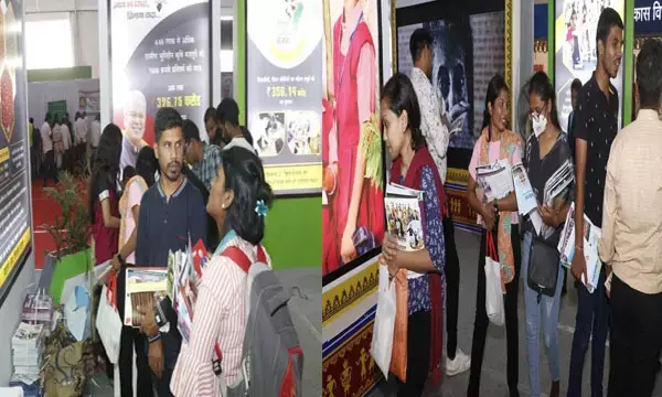 जनसम्पर्क के स्टॉल में प्रतियोगी युवाओं का हुजूम, छत्तीसगढ़ के जनजीवन और विकास पर आधारित पठनीय सामग्री हासिल करने की ललक