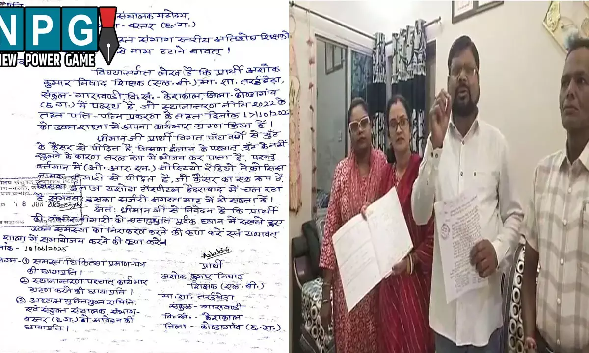 विभाग के अधिकारियों ने केंसर जैसे गम्भीर बीमारी से ग्रसित शिक्षक को भी नहीं बक्सा रहे हैं। 2021 से कैंसर जैसे गम्भीर बीमारी से जूझ रहे शिक्षक अशोक कुमार निषाद माध्यमिक शाला तराई बेड़ा विकास खण्ड केशकाल में पदस्थ हैं. 2021 से कैंसर बीमारी से पीड़ित है। एक बार इनका ऑपरेशन हो चुका है. दूसरा ऑपरेशन होना है। मुँह में कैंसर होने से तरल पदार्थों का ही सेवन भोजन के रूप में कर रहे है।