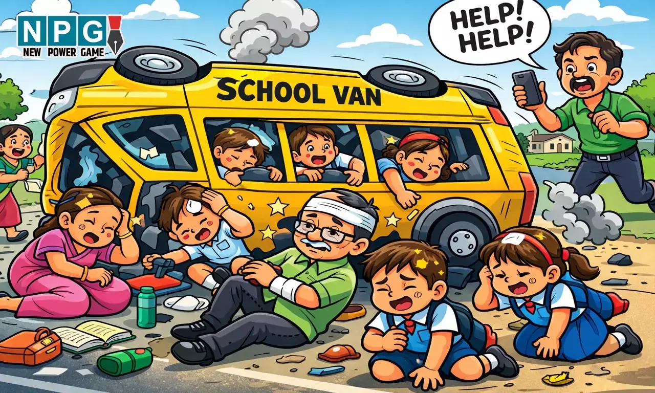 जांजगीर-चांपा: बच्चों और शिक्षकों से भरी स्कूल वैन पलटी, 15 छात्रों समेत टीचर्स और प्रिंसिपल घायल