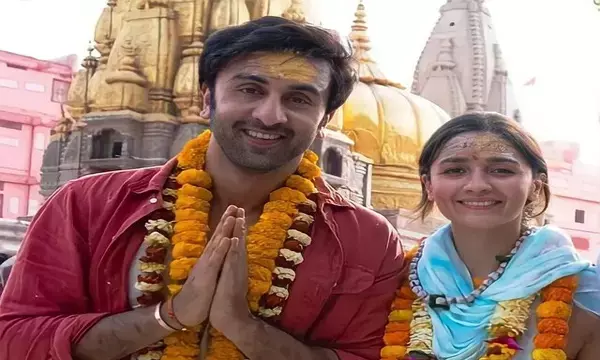 PHOTO & VIDEO: माथे पर चंदन और गले में माला, बाबा विश्वनाथ के दर्शन करने पहुंचे आलिया- रणबीर कपूर... देखें