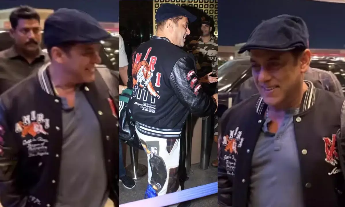 Salman Khan News: मुंबई। सलमान खान को मुंबई एयरपोर्ट के बाहर अनोखे अंदाज़ में स्पॉट किया गया। वे अमीरी जैकेट के साथ टोपी और ऐसे ट्राउज़र्स पहने नज़र आए जिसके पिछले हिस्से में खुद उनकी ही फोटो प्रिंटेड थी। अपने अनोखे ड्रैसिंग स्टाइल से ही नहीं, बल्कि सलमान ने अपने खुशनुमा अंदाज़ से भी लोगों का ध्यान खींचा। वे अपने फैन्स से खूब हंसकर मिले, कुछेक को गले भी लगाया। आज सोशल मीडिया यूजर्स के बीच उनके स्टाइल के खूब चर्चे हैं।