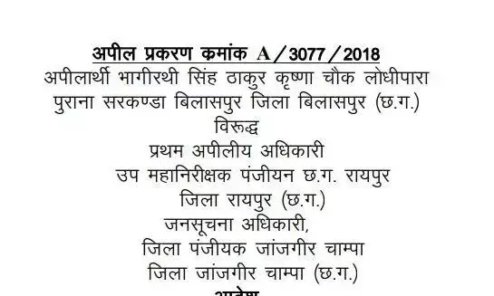 रायपुर, 24 दिसंबर 2021। मुख्य सूचना आयुक्त एमके राउत ने जांजगीर की पंजीयन विभाग के तत्कालीन डिप्टी रजिस्ट्रार पर न केवल 25 हजार का जुर्माना ठोका है बल्कि महानिरीक्षक पंजीयन को आदेष दिया है कि महिला अधिकारी ने 20 महीने तक जानकारी छुपाई, इसलिए जांच कर अनुशासनात्मक कार्रवाई की जाए।