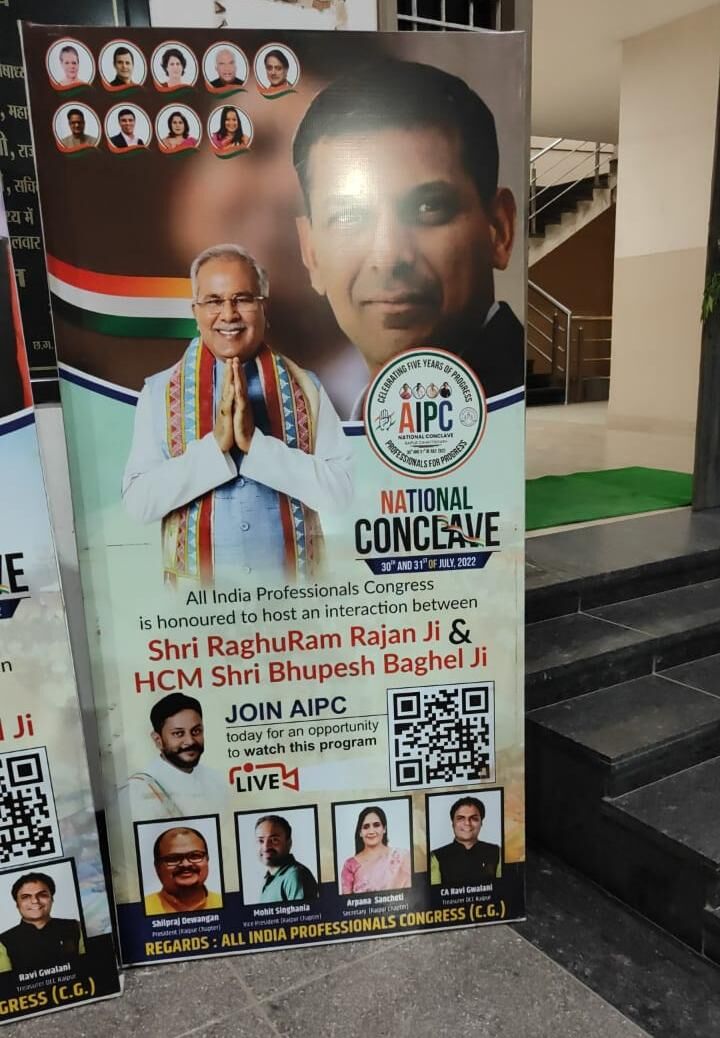 छत्तीसगढ़ में पहली बार प्रोफेशनल कांग्रेस का बड़ा इवेंट होने जा रहा है। पहले दिन सुबह 10 से 6 बजे तक यह इवेंट होगा। दूसरे दिन सुबह 10 से 7 बजे तक आयोजन है। इसमें आरबीआई के पूर्व गवर्नर रघुराम राजन मुख्य वक्ता होंगे। इसके अलावा छत्तीसगढ़ प्रभारी पीएल पुनिया, सीएम भूपेश बघेल, पीसीसी अध्यक्ष मोहन मरकाम, प्रो. एमवी राजीव गौड़ा, यामिनी अय्यर, चंदन यादव, जरिता लैतफलांग आदि शामिल होंगे।