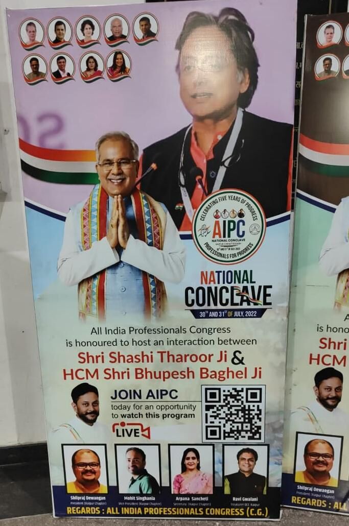 पोस्टर से मरकाम गायब: प्रोफेशनल कांग्रेस के राष्ट्रीय सम्मेलन में आएंगे थरूर, रघुराम राजन जैसे दिग्गज... पोस्टर-फ्लैक्स में पीसीसी अध्यक्ष की तस्वीर नहीं