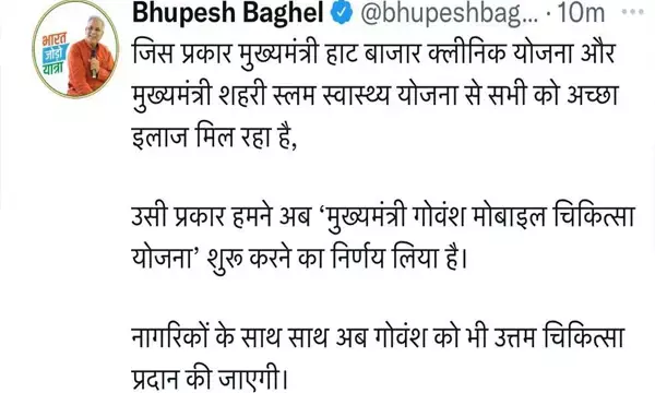 छत्तीसगढ़ में शुरू होगी मुख्यमंत्री गोवंश मोबाइल चिकित्सा, CM भूपेश बघेल ने दिए निर्देश...