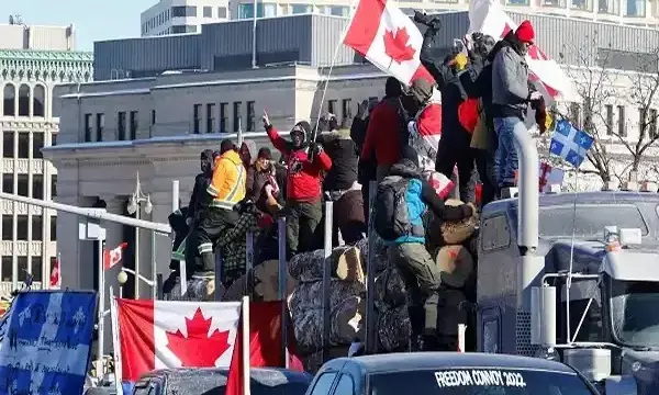 शनिवार को 20 हजार से अधिक ट्रक चालकों एवं अन्य प्रदर्शनकारी राष्ट्रीय राजधानी ओटावा में जमा हो गए। ट्रक चालकों ने अमेरिका की सीमा को पार करने के लिए वैक्सीन को अनिवार्य बनाए जाने का विरोध किया है। ट्रक चालकों में गुस्सा इस बात का भी है क्योंकि कुछ दिन पहले कनाडाई पीएम ने एक विवादित बयान देते हुए ट्रक वालों को 'महत्व नहीं रखने वाले अल्पसंख्यक' करार दिया था। शहर में स्थिति गंभीर हो गई है। आलम यह है कि ओटावा जाने वाले रास्ते पर ट्रकों की 70 किमी तक लंबी कतार लग गई है जिसके कारण अन्य यात्रियों को भी आने-जाने में कठिनाइयों का सामना करना पड़ रहा है। ट्रक चालकों के उग्र प्रदर्शन के मद्देनजर प्रधानमंत्री जस्टिन ट्रूडो और उनके परिवार को गुप्त स्थान पर छिपने के लिए भागना पड़ा है।